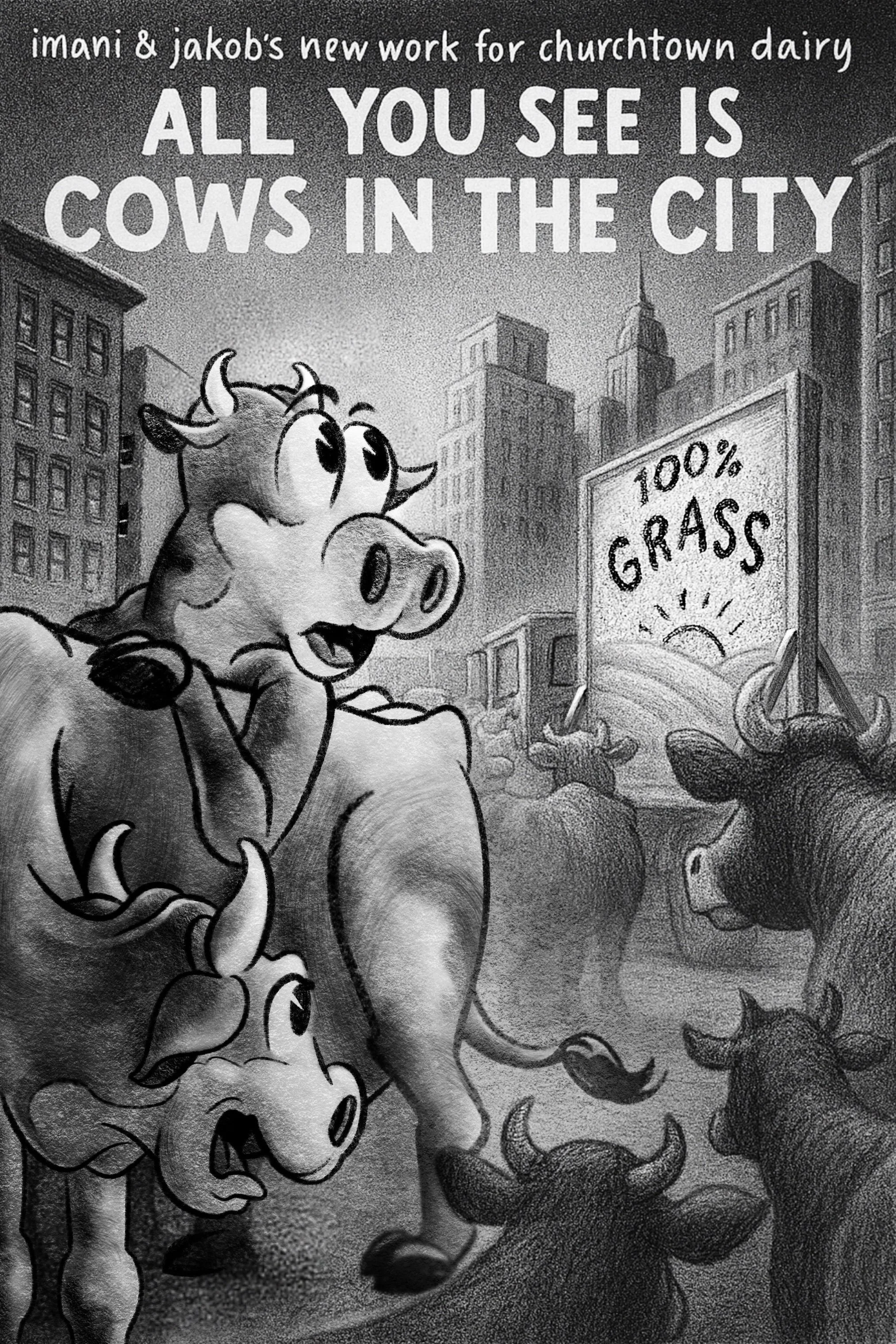 In this new work, NYC-based art duo imani & jakob (imani,a dancer from New Orleans, and jakob, a visual artist from the Bronx) imagine a world where cows reclaim the city—not as livestock, but as agents of revolt. Inspired by graffiti artist Skeme’s phrase “all you see is crime in the city,” the duo subverts that line to ask what it means when nature fights back.